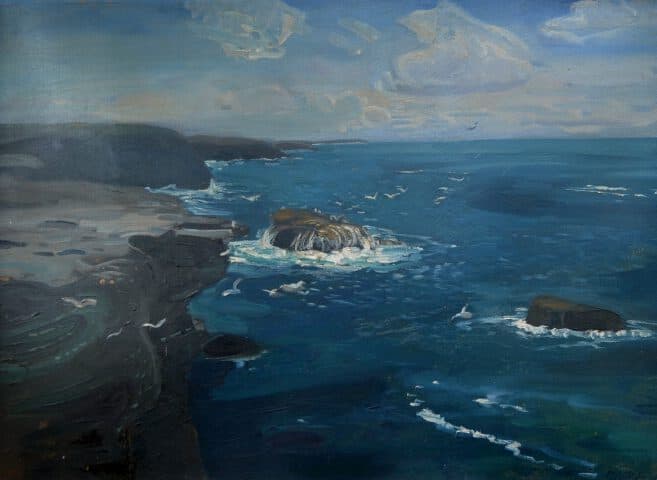 Wie Sie in dem Bild oben sehen, malte Emmy Lischke besonders gerne Motive wie das Meer oder Küstenlandschaften. Das Gemälde wurden mit groben Pinselstrichen gemalt, weshalb manche Darstellungen eine abstrakte Wirkung ausstrahlen.