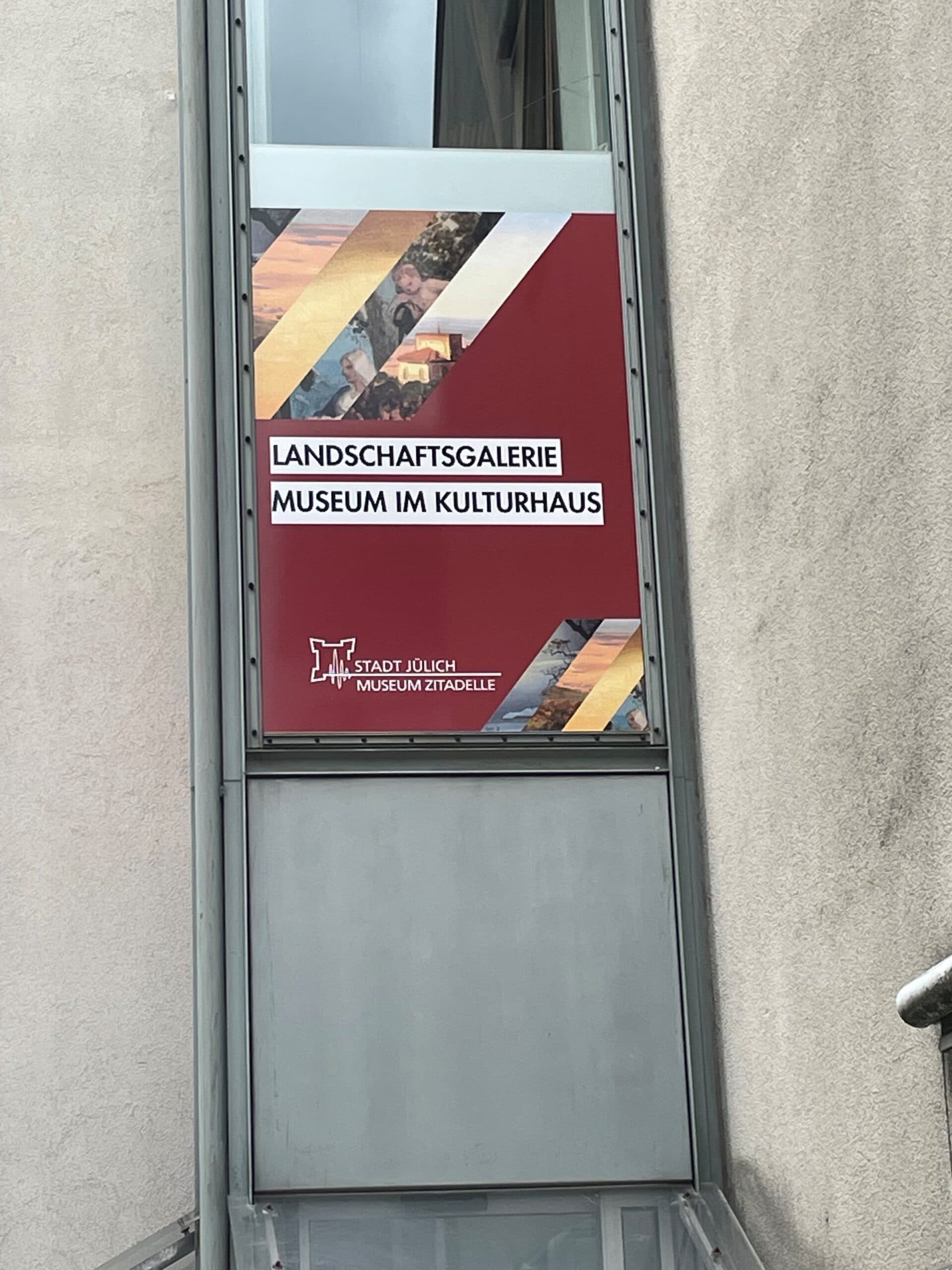 Am Kulturhaus am Hexenturm wurde eine neue Beschriftung angebracht, damit man besser die Landschaftsgalerie im Kulturhaus findet. In luftiger Höhe wurde eine ansprechende und erklärende Plakatierung angebracht. Schauen Sie doch mal vorbei und besuchen unsere erstaunliche Schirmer Ausstellung „100 Jahre Sehnsucht!“ in der Landschaftsgalerie.