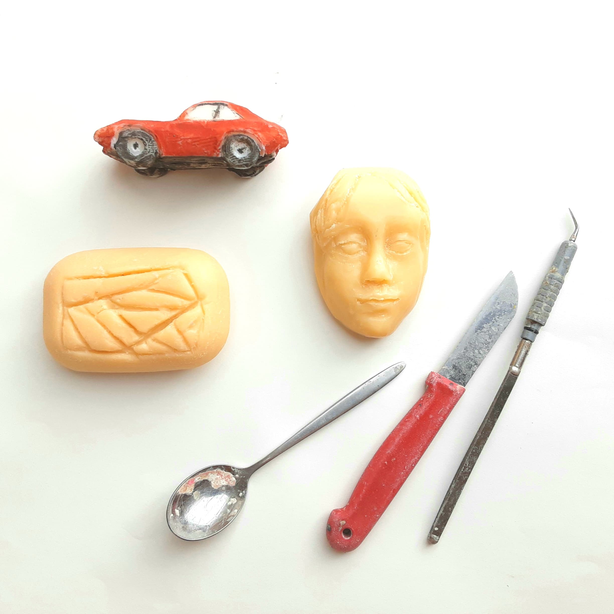 Bei diesem Workshop lernt ihr mit Ton und Gips zu arbeiten - zu formen und zu raspeln, so entstehen vielseitigen Reliefe. Das sind Formen die aus einer Bildfläche hervortreten. Diese können mit Farbe gestaltet werden und man kann einen Papierdruck herstellen. Mit der Seife, die weich ist kann man gut modelieren und gestalten und zu einnem Geschenk herstellen.