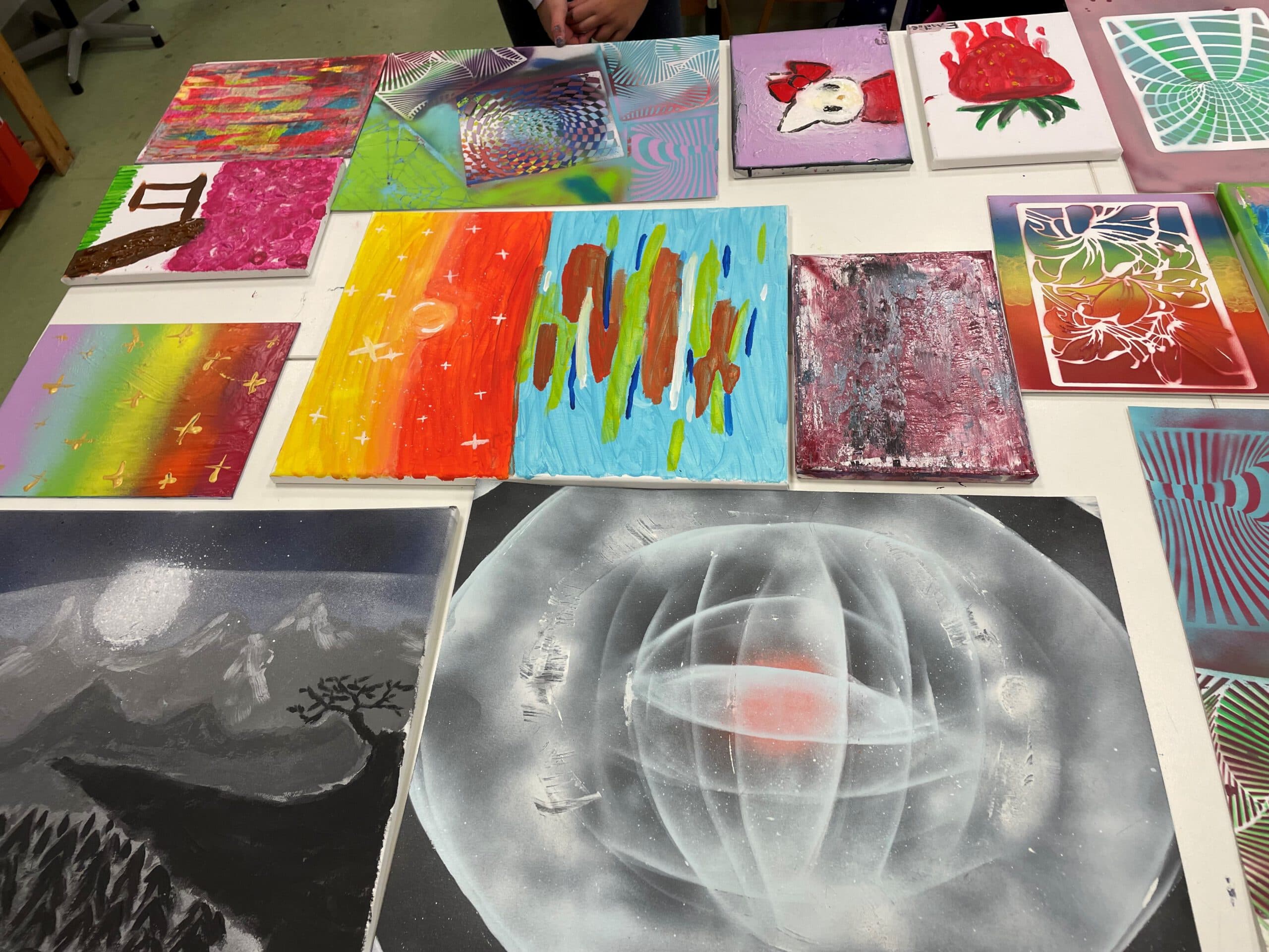 Im Workshop wird mit verschiedenen Materialien und verschiedenen Techniken gemalt und kreativ gearbeitet.
