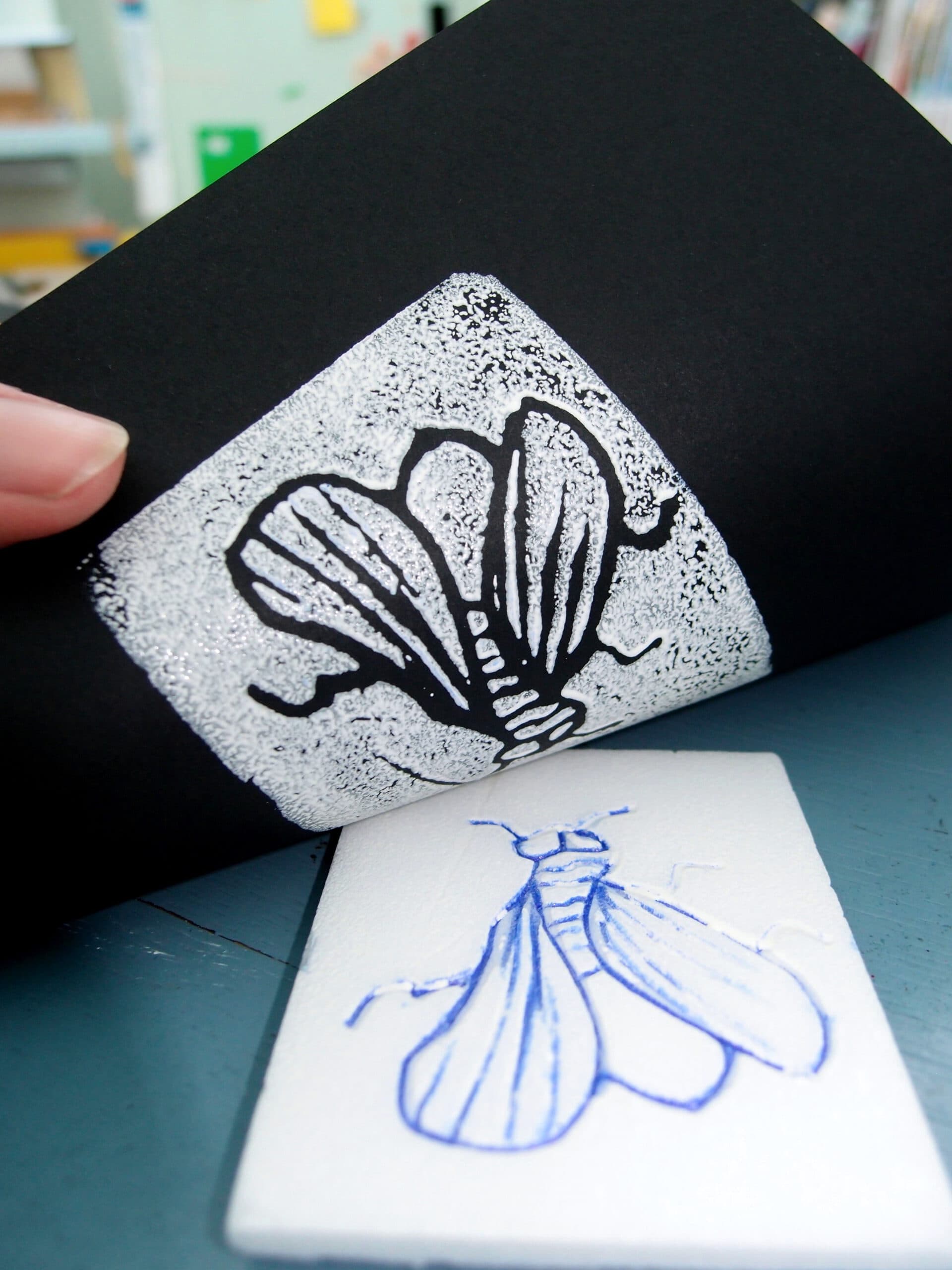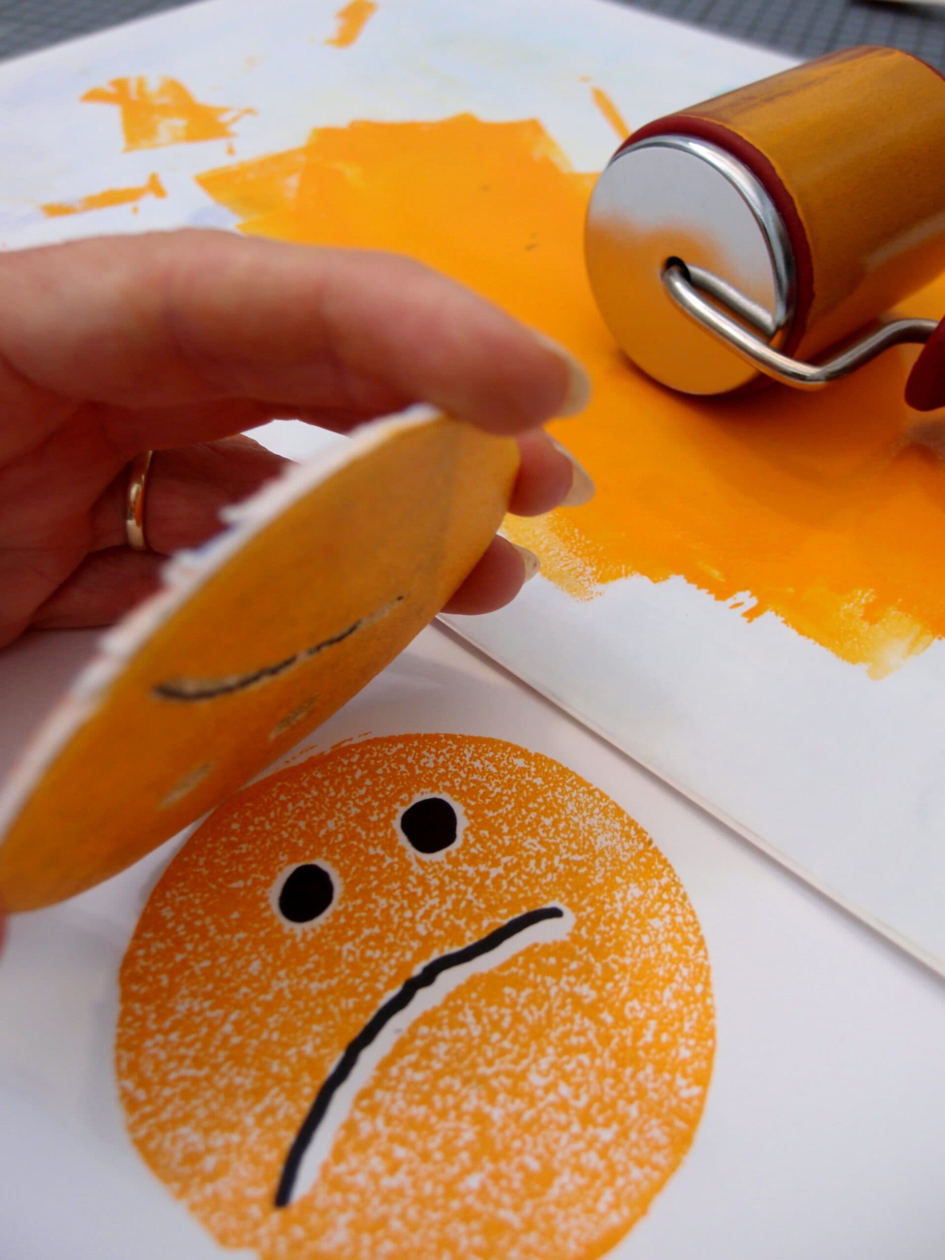 Gedruckt wird mit Alltagsgegenständen und allem was plan genug ist, um einen Abddruck zu erzeugen. Diese einfache Technik macht Spaß und führt schnell zu verblüffenden Ergebnissen.